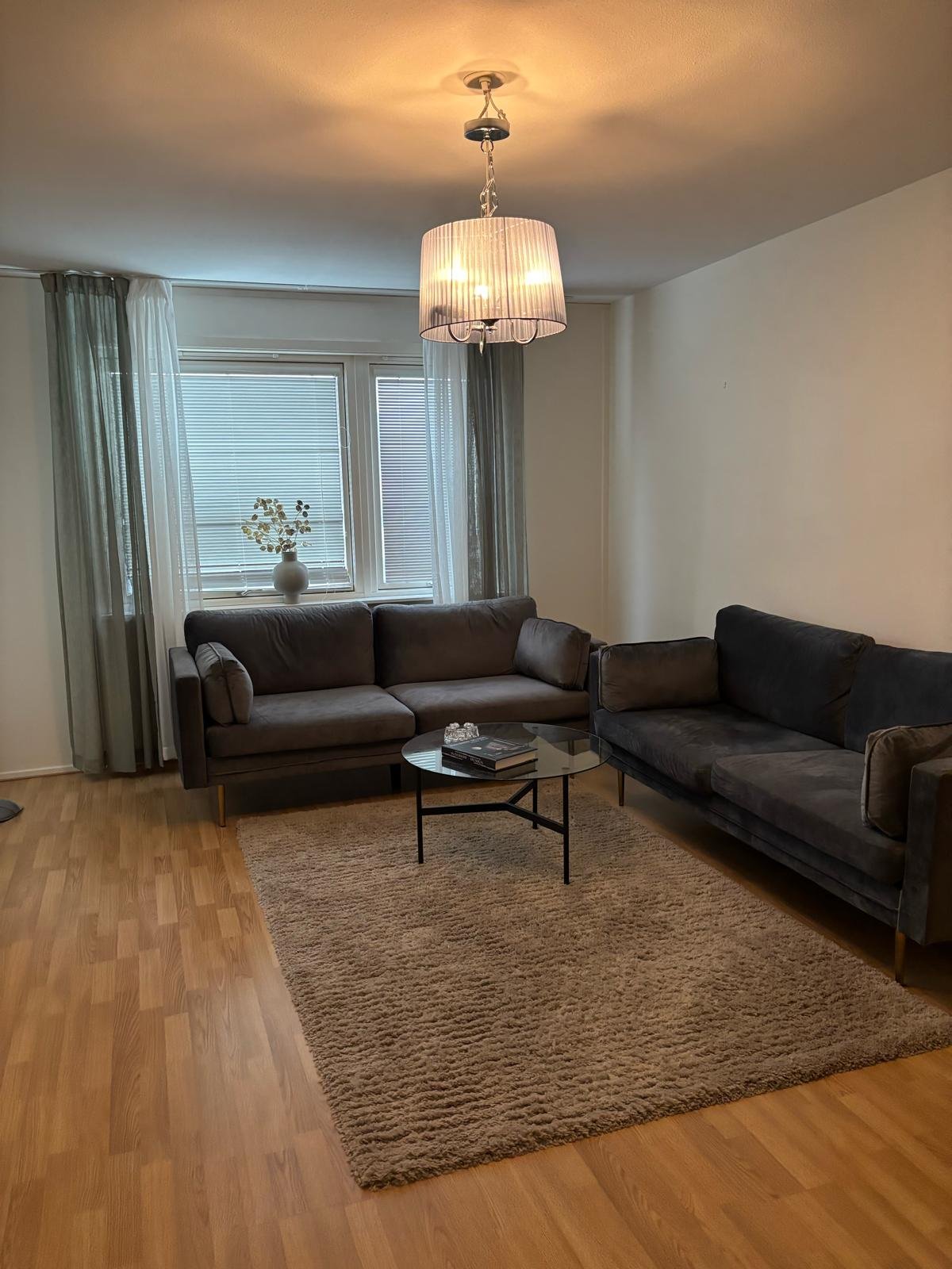 Ljus och nyrenoverad trea på 64 kvm, belägen i ett eftertraktat område nära kollektivtrafik. Balkong, stilrent kök och generös sällskapsyta. Hyran är 8000 kr per månad. Andrahandsuthyrning, all kontakt sker via hyresvärden. Inflyttning omgående.”