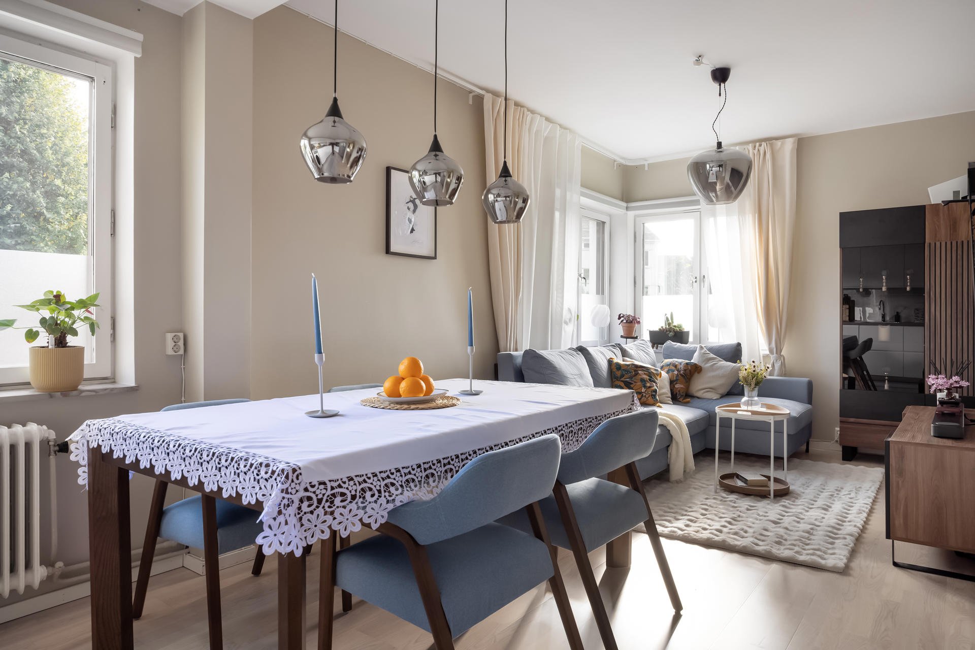 Välkommen till denna fina 3,5:a i en välbevarad fastighet från 1940-talet med klassisk Göteborgscharm med centralt läge nära allt! Här bor du i en välplanerad bostad där den tidigare 3:an har byggts om för att skapa ett extra rum – perfekt som barnrum, gästrum eller hemmakontor. Lägenheten ligger en halv trappa upp och har ett härligt ljusinsläpp från stora fönster i två väderstreck som ger en ljus och luftig känsla. Det nyrenoverade köket är fullt utrustat med moderna vitvaror från välkända kvalitetsmärken och har gott om förvaring samt plats för matbord med utsikt mot grönska. Badrummet håller en hög standard med stilrena materialval och genomtänkt funktion. Föreningens mysiga innergård nås enkelt från bostaden – en trivsam oas där man kan grilla, umgås och njuta av solen med naturen intill. Läget på Centrala Hisingen, bara ett stenkast från Vågmästareplatsen och Backaplan, erbjuder ett brett utbud av service, butiker, restauranger, apotek och gym. Kommunikationerna in till centrala Göteborg är utmärkta och tar dig till city på bara några minuter – här behöver du aldrig tänka på tidtabellen. Hyran inkluderar värme, varm- och kallvatten, snabbt internet (1000 Mbit/s) samt ett grundutbud av TV-kanaler. Lägenheten kan hyras ut möblerad eller omöblerad, beroende på dina behov. -- Welcome to this lovely 3.5-room apartment in a well-preserved 1940s building with classic Gothenburg charm, centrally located close to everything! Here you will live in a well-planned home where the former three-room apartment has been converted to create an extra room – perfect as a children’s room, guest room, or home office. The apartment is half a flight up and enjoys wonderful natural light from large windows facing two directions, creating a bright and airy feel. The newly renovated kitchen is fully equipped with modern appliances from well-known quality brands and offers plenty of storage as well as space for a dining table overlooking greenery. The bathroom is finished to a high standard with stylish material choices and thoughtful functionality. The association’s cozy inner courtyard is easily accessed from the apartment – a pleasant oasis where you can barbecue, socialize, and enjoy the sun with nature close by. The location in Central Hisingen, just a short stroll from Vågmästareplatsen and Backaplan, offers a wide range of services, shops, restaurants, pharmacies, and gyms. Public transport connections to central Gothenburg are excellent and will take you to the city center in just a few minutes – you will never need to think about the timetable. The rent includes heating, hot and cold water, high-speed internet (1000 Mbit/s), and a basic TV package. The apartment can be rented either furnished or unfurnished, depending on your needs.