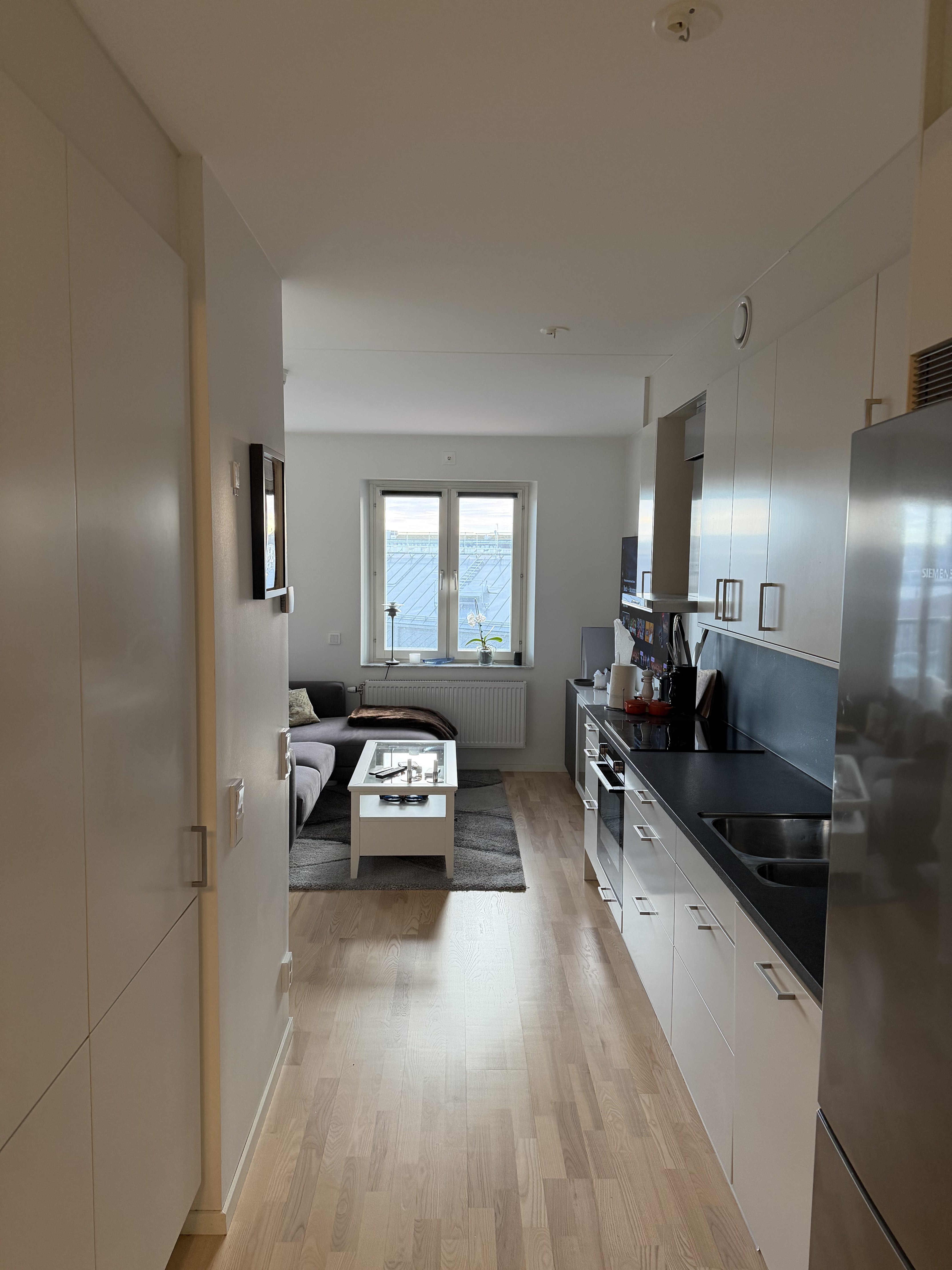 Etta på 35kvm Utöver hyra tillkommer vatten och el, det brukar vara ca 300kr för mig. Det är bara ett par hundra meter till spårvagn/buss. Jag hyr ut den för att bo med min flickvän.